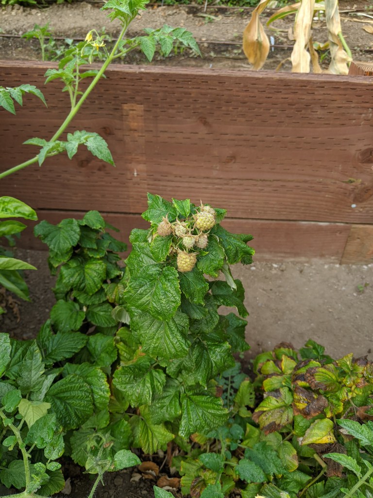 6. A raspberry bush that has, for reasons mysterious to me, decided to set berries now, after none whatsoever earlier in the year. Um…. Maybe these will ripen before winter? I’m not convinced.
